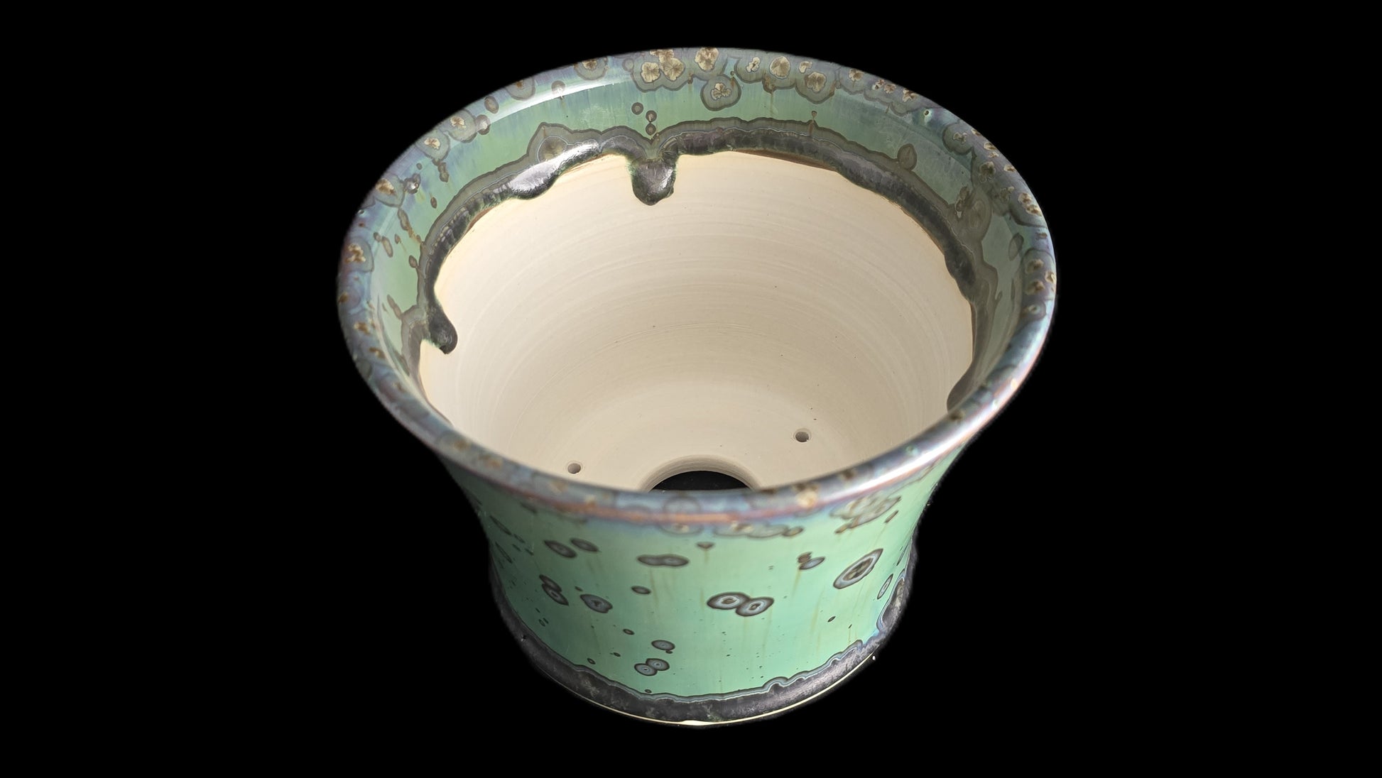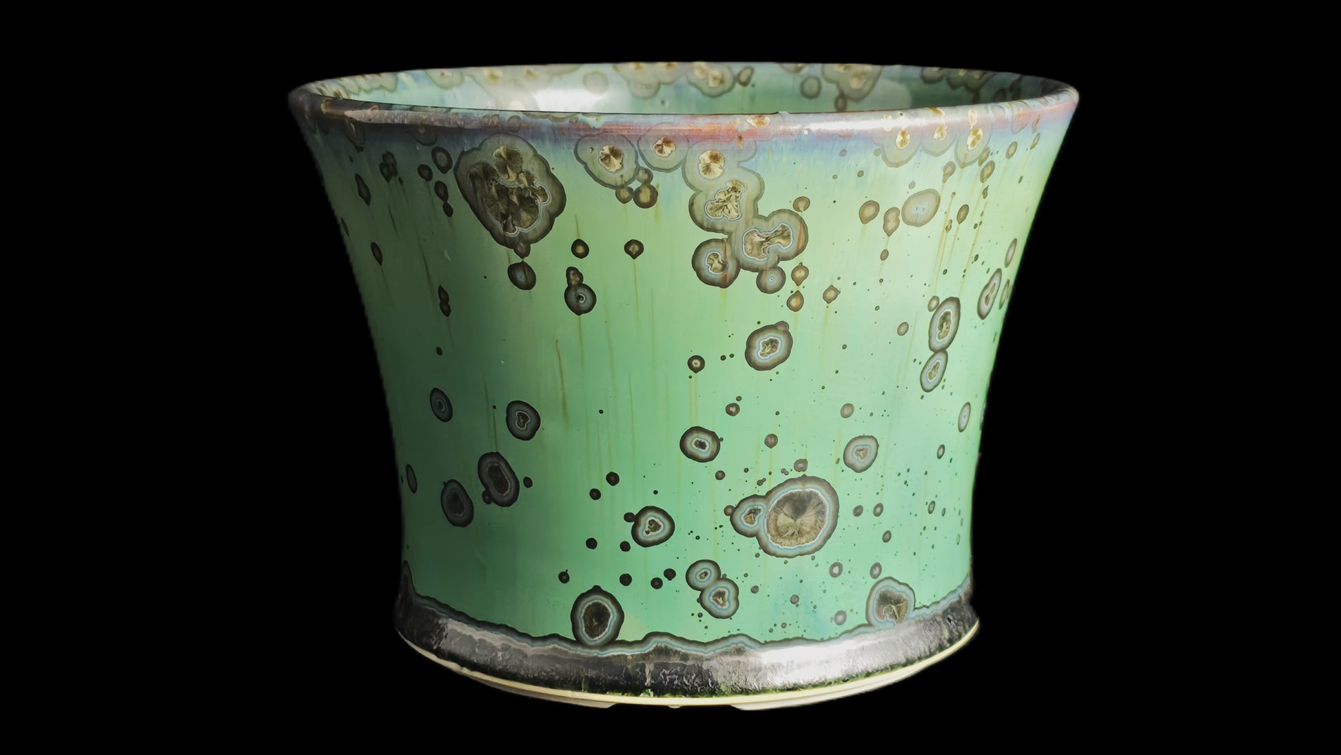 Bonsai Pot, Green Crystalline Round 1-26 - 6.75" X 5"